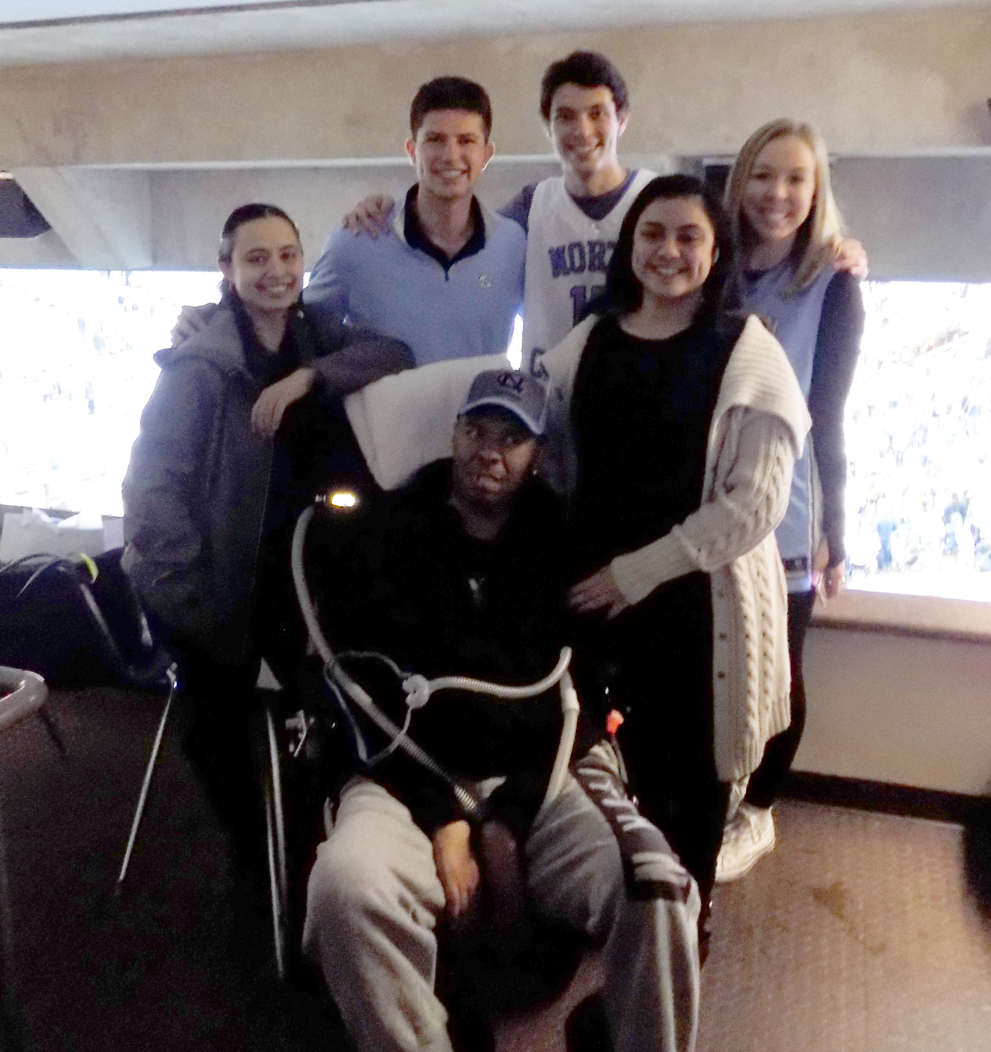 But what I was most impressed with was the family I had escorted to the game. The team leader for Transitions LifeCare’s volunteer department had arranged for four tickets from Kent Linton, founder of UNC’s DreamCatchers’ program. Accompanying me was the patient Gregg who has ALS and is essentially unable to do anything physical for himself, and his extraordinary caregivers: his wife and their eldest daughter.
