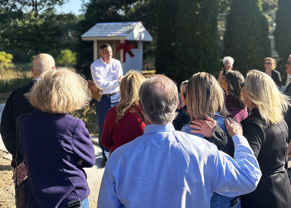 On October 24, Transitions LifeCare had a dedication ceremony to officially open the beautiful new landmark in honor of Derek Lemieux. After spending the last few days of his life at TL in the William M. Dunlap Center for Caring (Hospice Home), his family generously dedicated a Wind Phone in his memory for use on our campus. A Wind Phone is an unconnected phone booth that allows one-way conversations. It sits in a perfectly shaded nook towards the back parking lot, overlooking the neighboring farmland and serving as a spot to talk with loved ones who have passed on.