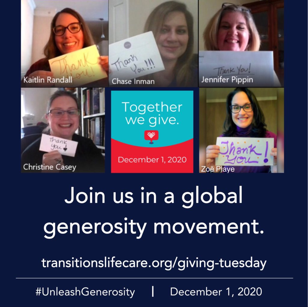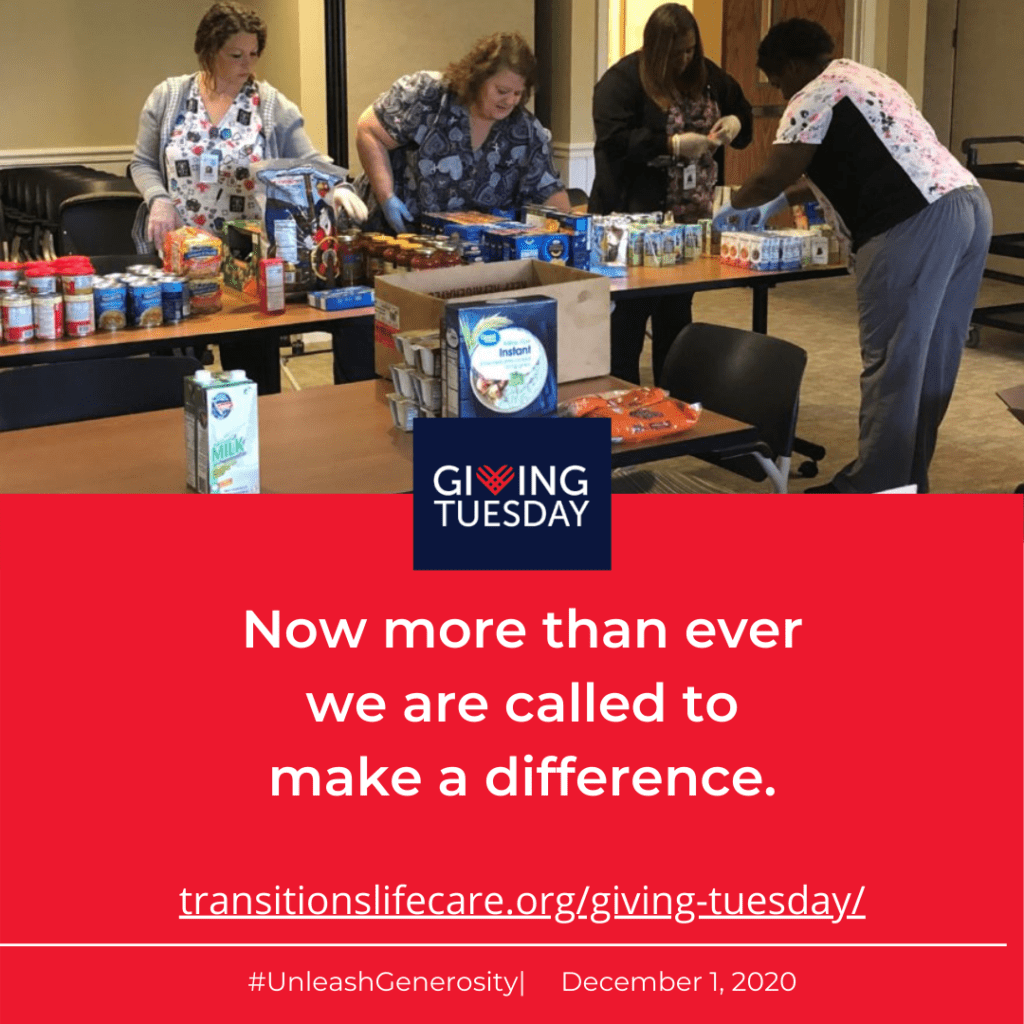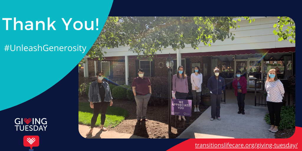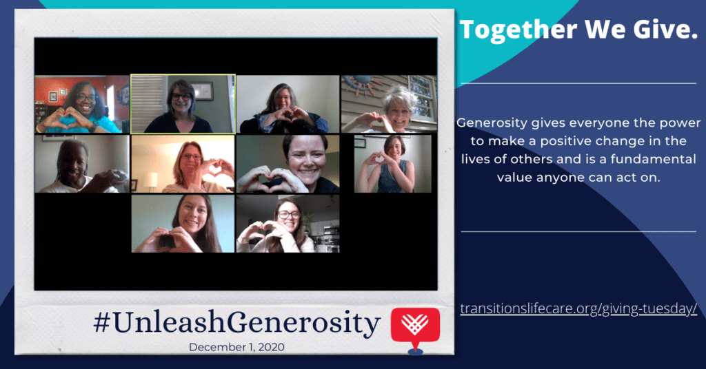 Transitions LifeCare joins #GivingTuesday to #UnleashGenerosity on Tuesday, December 1. Situations change rapidly; however, our priority of caring for those who need us – regardless of their financial status – will never change.